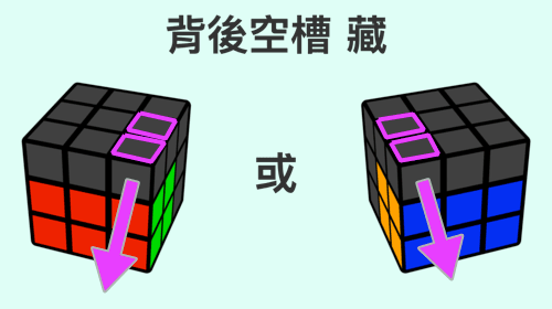 背面空槽「藏」的方向,方格為要藏起來的角塊/邊塊的位置