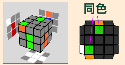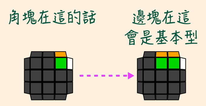 邊塊角塊從上面看都是綠色,是同色。角塊藏起來再出現不會改變向上的顏色。所以想辦法配成「同色基本型」