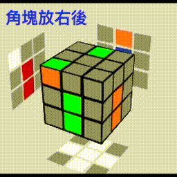 對照右後方角塊的白色面向,下面是邊塊要移去配對的位置,以及整個解法