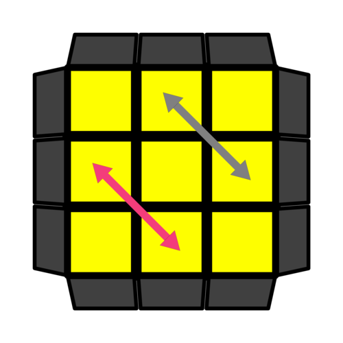 第一次觀察:只看四個角塊,目標每側的角落都同色